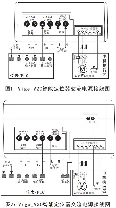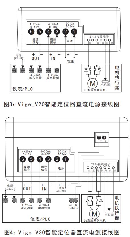 参见下图进行接线,按照接线端子和仪表外壳上的接线图,连接好电动执行器和电源连线,注意连接时的极性,为减少电机干扰,应将强电与弱电信号线分开走线;接上位仪表的电流控制信号线一般建议采用双绞线传输,并应尽量短些,若必须使用较长的连线时,应采用屏蔽信号线,外屏蔽与控制柜外壳妥善接地。